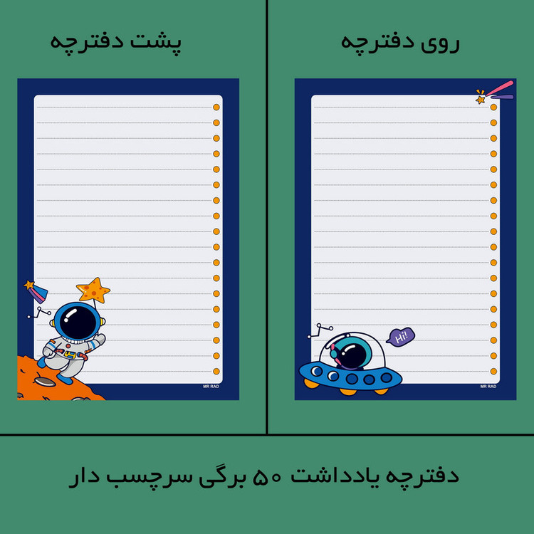 تخته شاسی مستر راد مدل فضانورد کد fiory 2405 سایز A5 به همراه کاغذ یادداشت