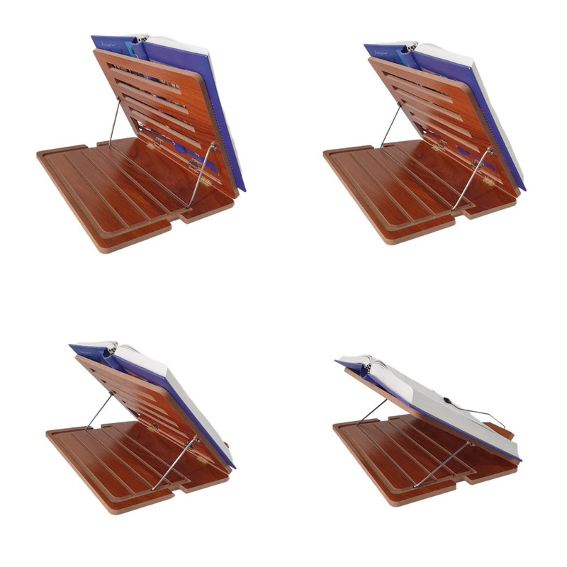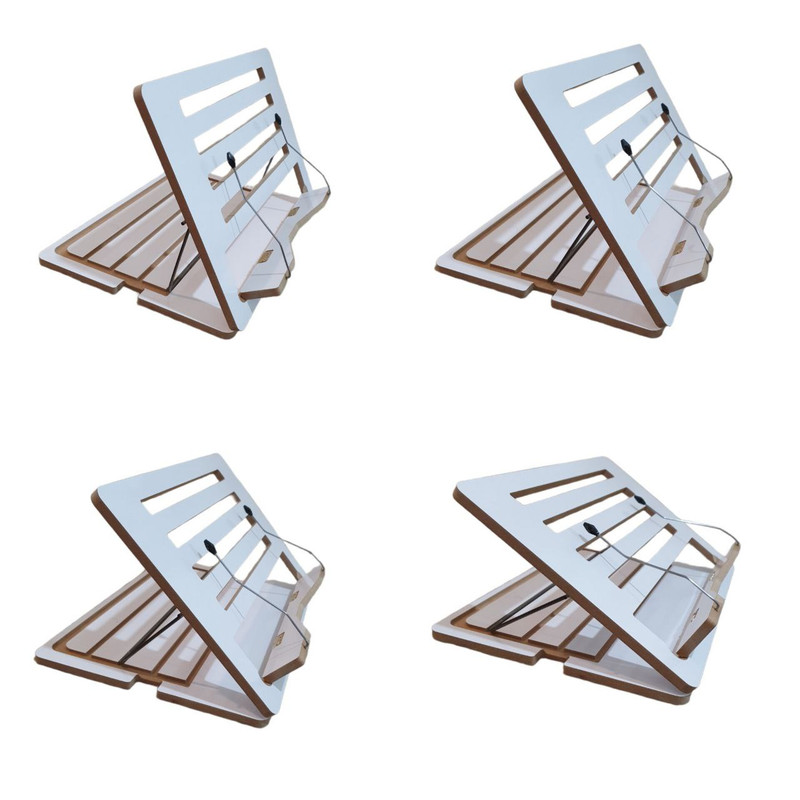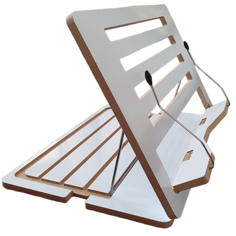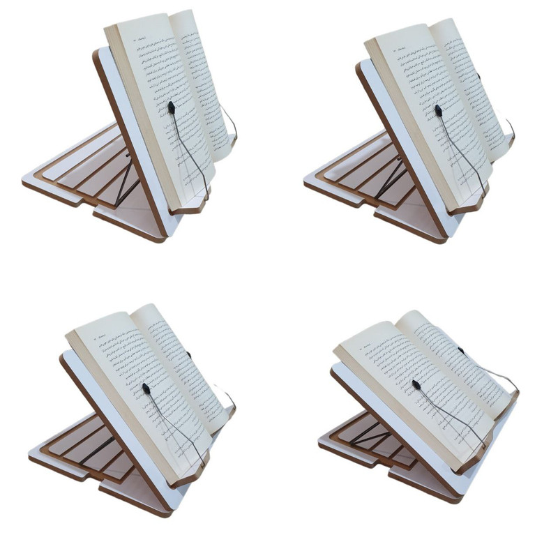 نگهدارنده کتاب مدل کتابخوان پلاس محصولی بسیار کاربردی جهت نگهداشتن کتاب و تبلت و لپ تاپ میباشد. این محصول با تغییر زاویه در حالت های مختلف بهترین دید را برای مطالعه انواع کتاب ایجاد میکند. سیم های فنری نصب شده کتاب را باز نگه میدارد و چرخش این سیم ها ورق زدن صفحات کتاب را به آسانی ممکن میکند. فضای باز ایجاد شده در زیر مانع داغ شدن و آسیب به لپ تاپ میشود. این محصول طوری طراحی شده که از دو طرف قابل استفاده است و از طرف دیگر آن به عنوان تخته شاسی برای زیر دست در زاویه های مختلف قابل استفاده است. جنس این محصول از MDF با ضخامت 8 میل درست شده و ایستایی مناسبی برای انواع اندازه های کتاب و تبلت و لپ تاپ ایجاد میکند.