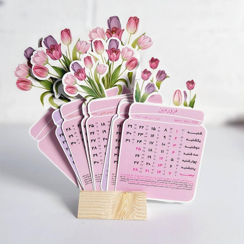 تقویم رومیزی پایه چوبی سال 1405 مدل گلدان کد 83223