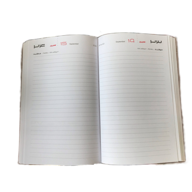 ابعاد25*20*4 سانتیمترنوع صحافیته دوختنوع سالنامهسررسید معمولیسال1405نوع تقویممیلادی , قمری , شمسینوع کاغذسفید 80 گرمنواخت روزهاروز شمارجنس جلدچرم مصنوعیفرم صحافیافقیجعبهندارد