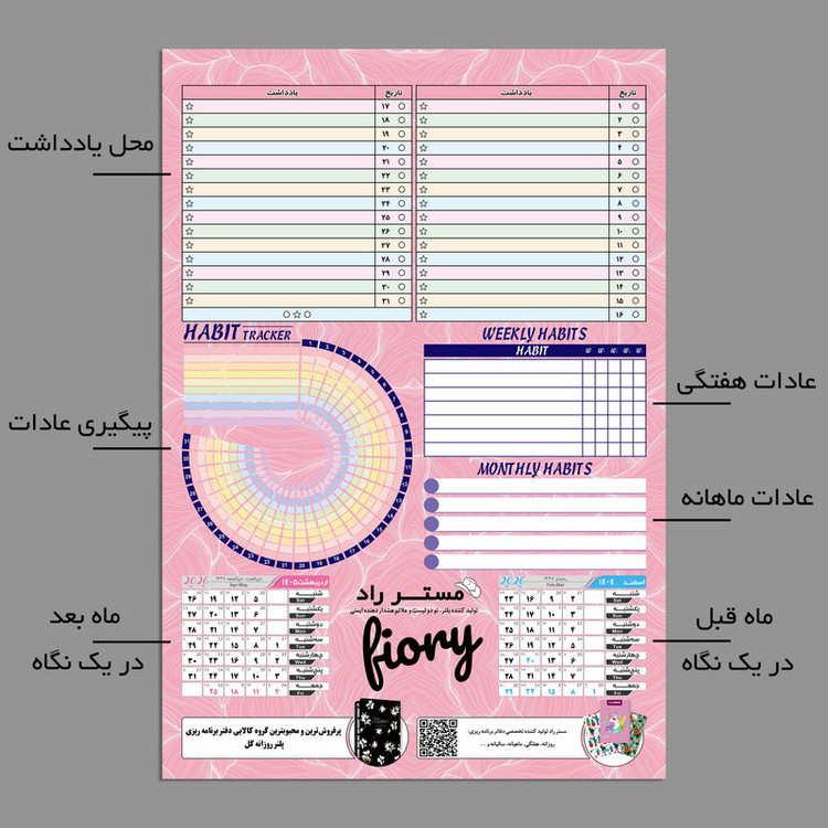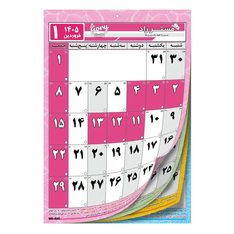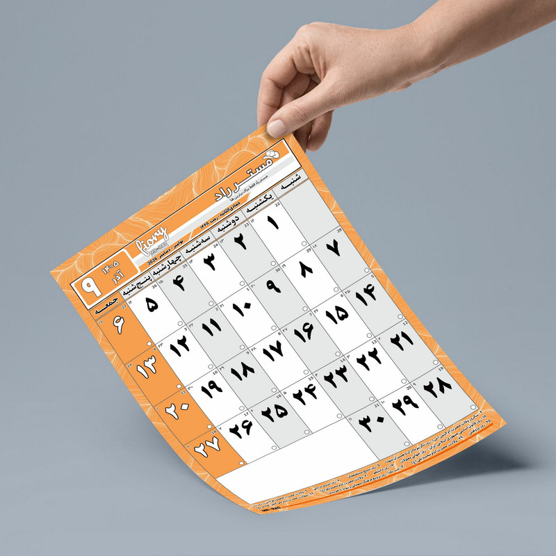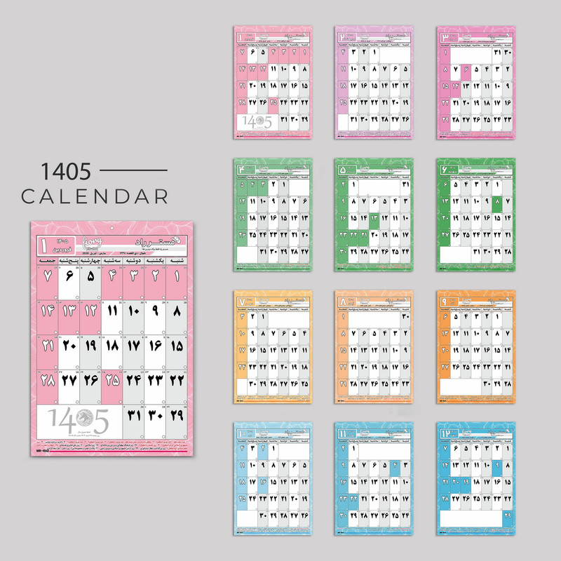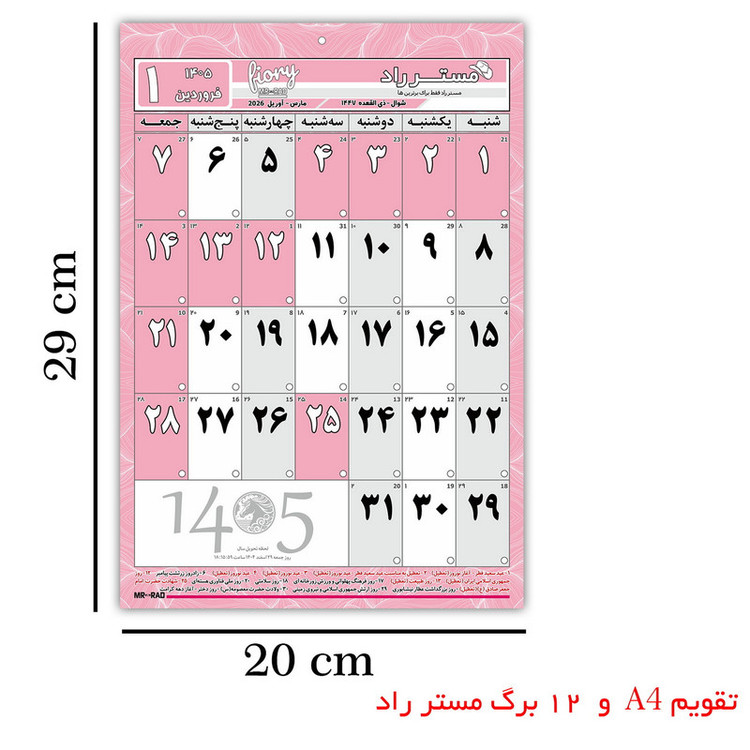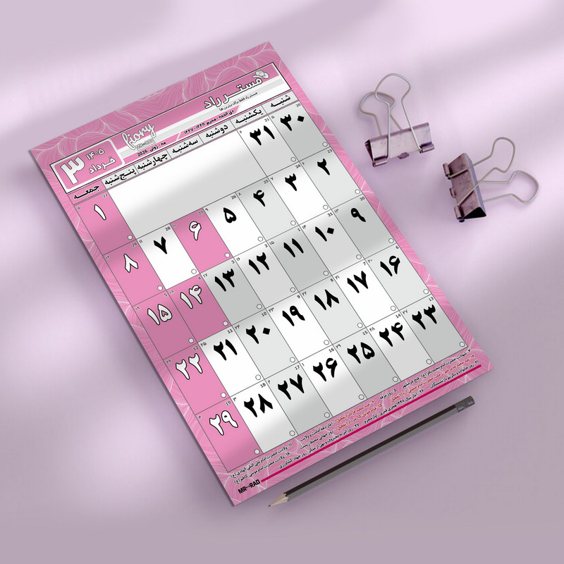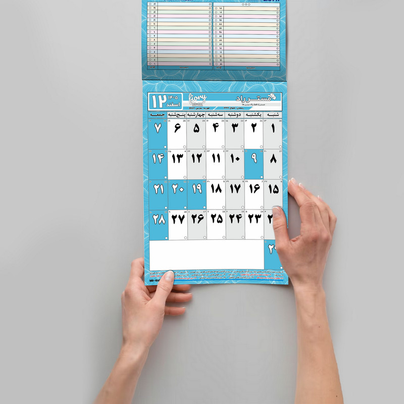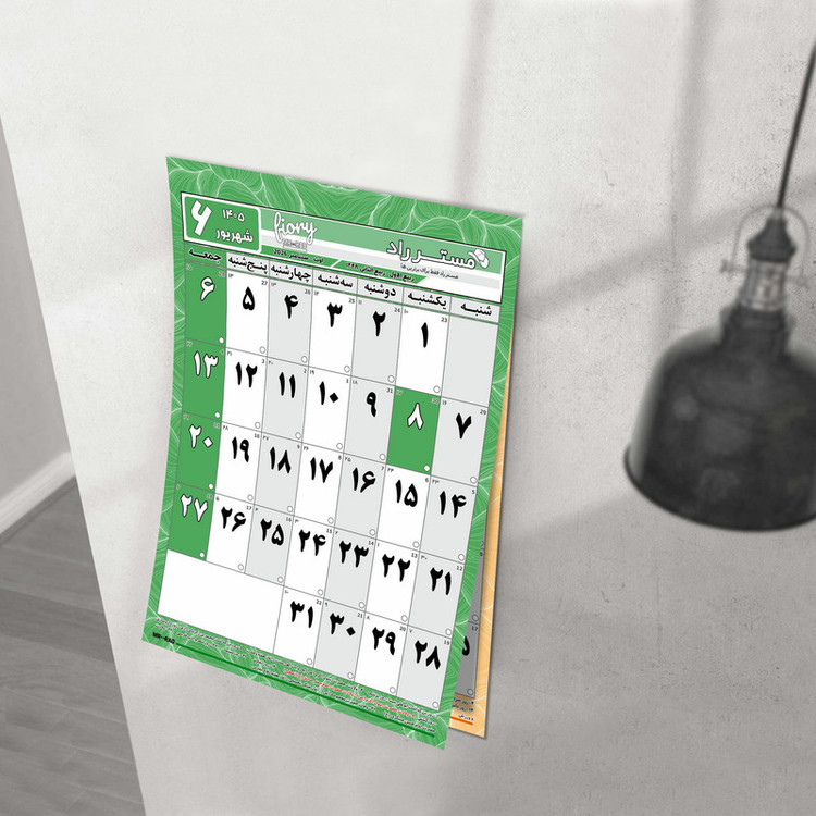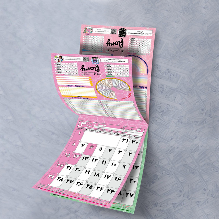 ابعاد A4 سایز دقیق 29X20 سانتیمتر 12 برگی هر برگ یک ماه با قابلیت یادداشت پشت هر برگ برنامه ریزی روزانه در ماه