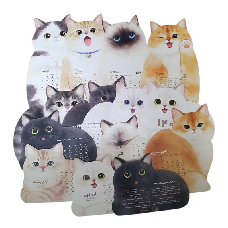 نوع صحافیبدون صحافینوع سالنامهتقویم رومیزیسال1405نوع کاغذگلاسهنواخت روزهاماه شمارجنس جلدبدون جلدفرم صحافیتک برگسایر توضیحاتتقویم رومیزی مدل گربه های ملوس با پایه چوبی به همراه جعبه مناسب برای هدیه دادنرنگچند رنگ