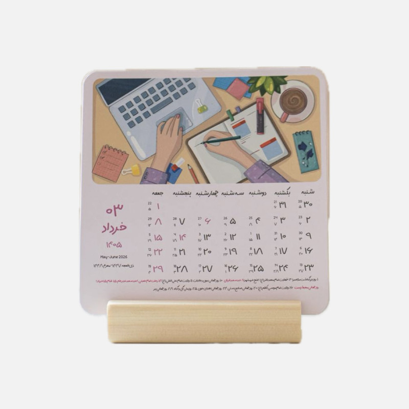 تقویم رومیزی سال 1405 مدل پایه چوبی