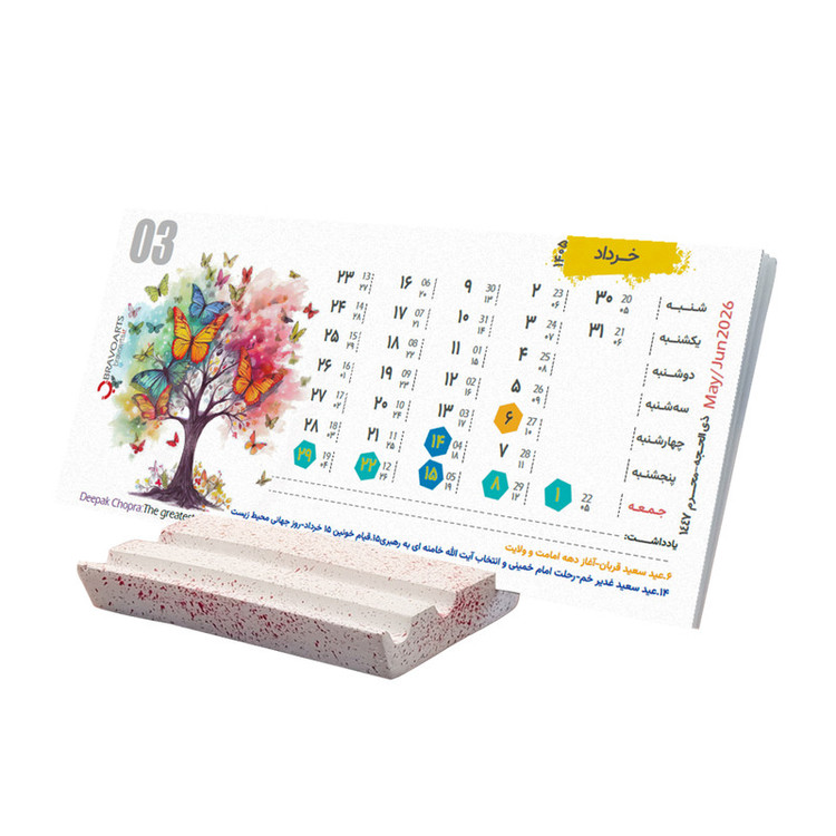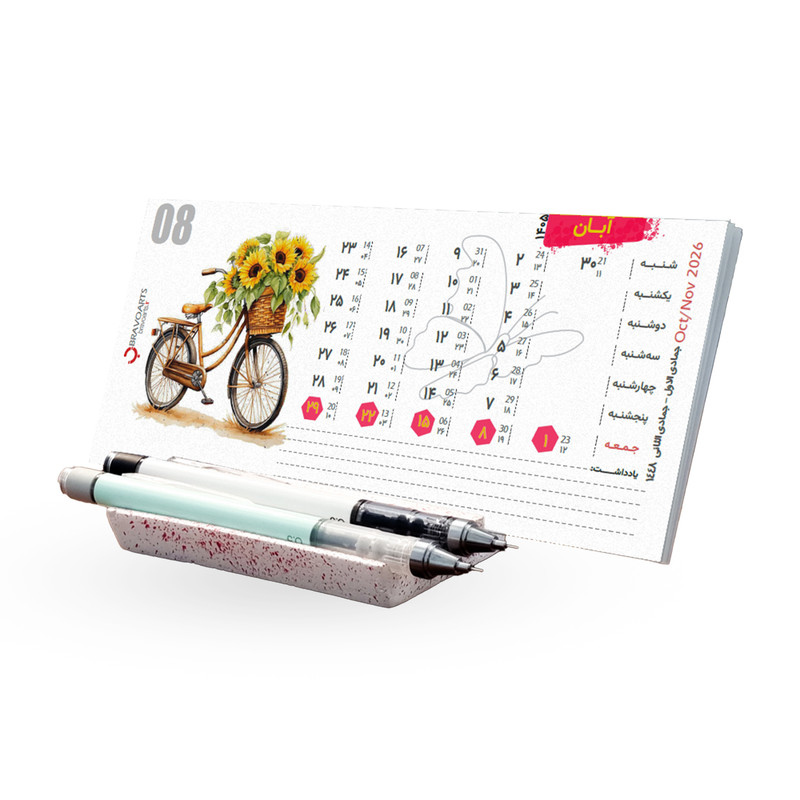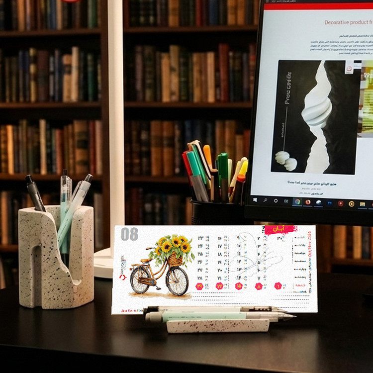 تقویم رومیزی طرح فانتزی -پایه کامپوزیت نگهدارنده برگه های تقویم و دو عدد جای قلم