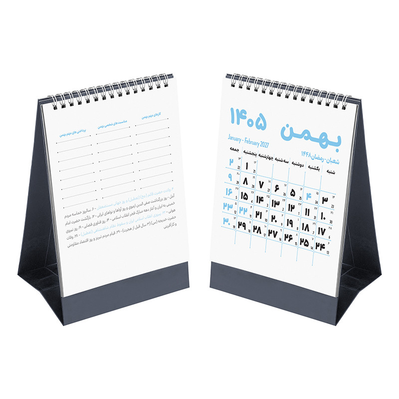 جعبهنداردابعاد10×16×1 سانتیمترنوع صحافیفنر دوبل فانتزینوع سالنامهتقویم رومیزیسال1405نوع تقویممیلادی , شمسی , قمرینوع کاغذگلاسهنواخت روزهاماه شمارجنس جلدسلفونفرم صحافیعمودیرنگصورتی روشن