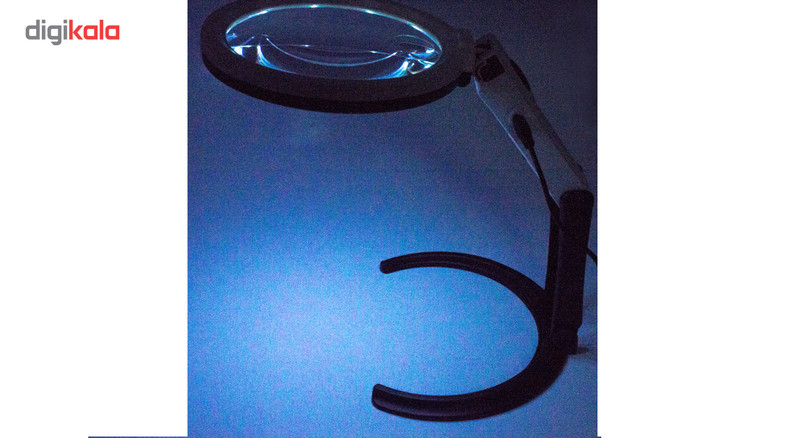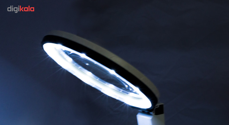 ذره بین پایه دار چراغدار دو منظوره دستی و رومیزی دارای 10 عدد لامپ LED به همراه آداپتور مناسب برا ی ستفاده پزشکان و تکنسین ها لنز مرکزی: 1.8×138 میلی متر لنز کمکی: 5×25 میلی متر
