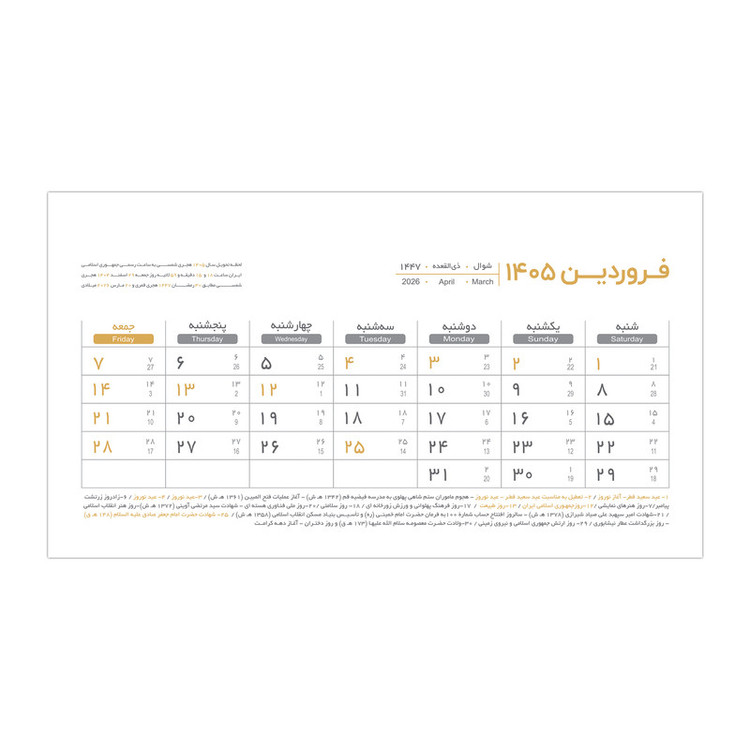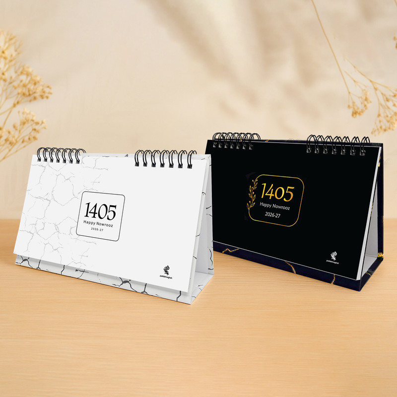 تقویم رومیزی سال 1405 پدیده نقش مدل hard cover گلاسه کد 01 بسته 2 عددی