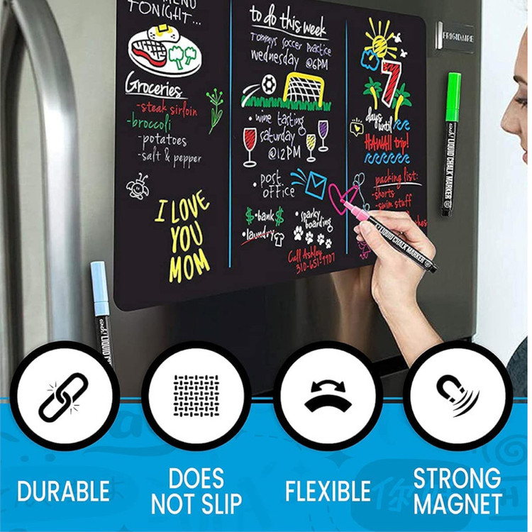 تخته وایت برد مدل انعطاف پذیر مغناطیسی سایز 43x28 سانتی متر به همراه ماژیک بسته 3 عددی
