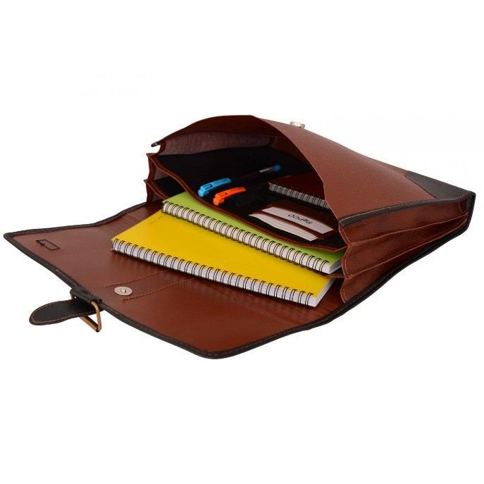 دارای جای کارت ویزیت، جای خودکار جنس :طلقی (قسمت های قهوه ای روشن) ، چرم مصنوعی(قسمت های قهوه ای تیره) کاربرد: نگهداری و حمل اسناد، مدارک و لوازم التحریر، مناسب برای همایش ها، سمینارها و کنفرانس ها، ویژه مدیران و دانشجویان وزن: 287 گرم