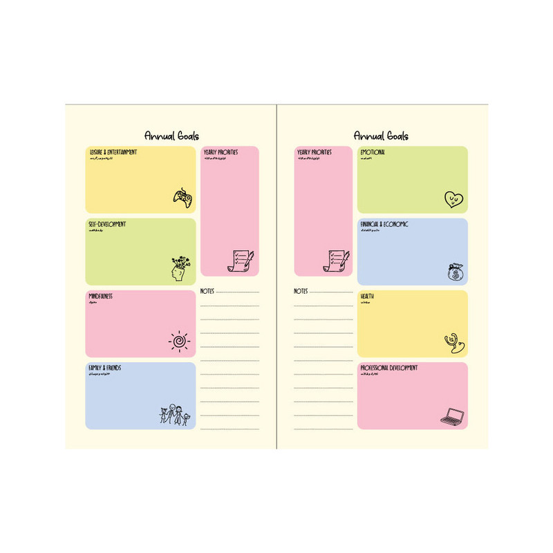 بخشهای اصلی موجود در پاپکو پلنر 2 شامل موارد زیر است. چشم انداز دو سالانه رویداد نجومی اهداف امسال چشمانداز ماهیانه چشمانداز هفتگی صفحه اهداف هفته هزینه کتاب فیلم سفر تعطیلات صفحه کارهای مهم و مناسبت های شخصی استیکر