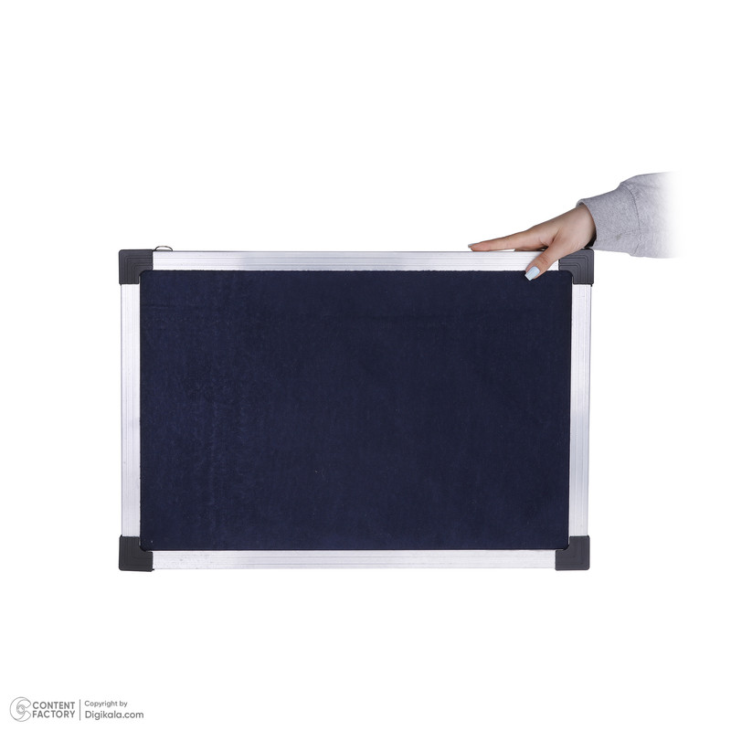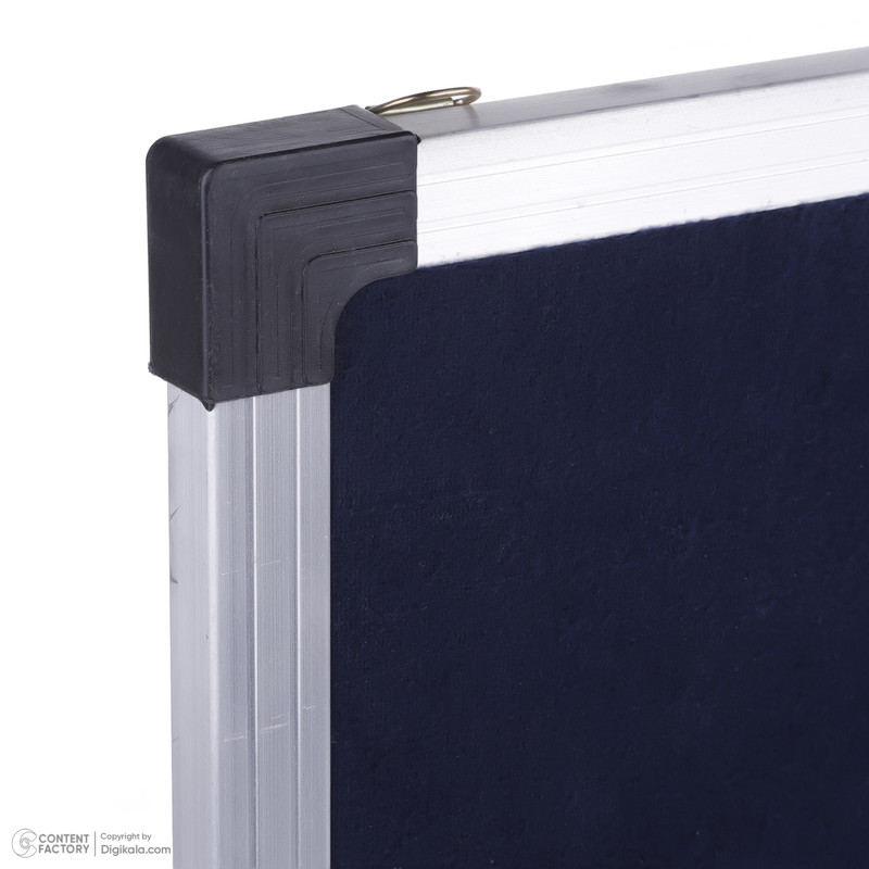 تابلو اعلانات ساده با قاب آلومینیوم: این نوع تابلو اعلانات رایج ترین و به صرفه ترین نوع تابلو اعلانات است که تشکیل شده از :1-قاب آلومینیومی 2.5 سانت.2-گوشه های پلاستیک. 3-جنس روی آن از پارچه با رنگ سرمه ای. 4- زیر پارچه(یونولیت فشرده ) با قابلیت بالای جذب سوزن ته گرد . 5- تخته نگهدارنده تابلو اعلانات چوب ام دی اف با ضخامت سه میلی متر است.