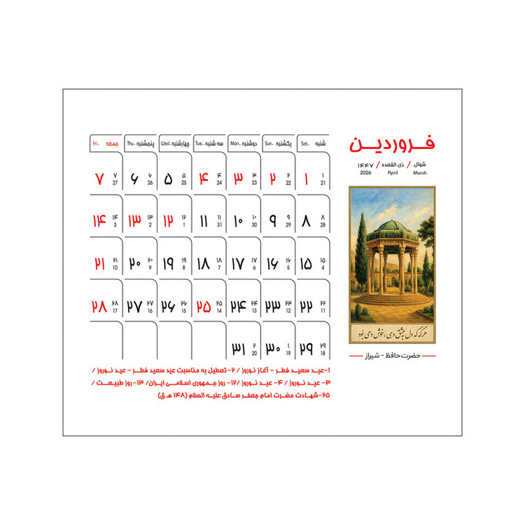 تقویم رومیزی سال 1405 پدیده نقش مدل مینی hard cover گلاسه کد 452