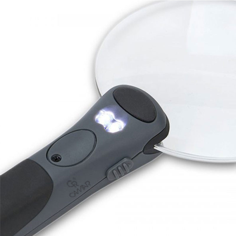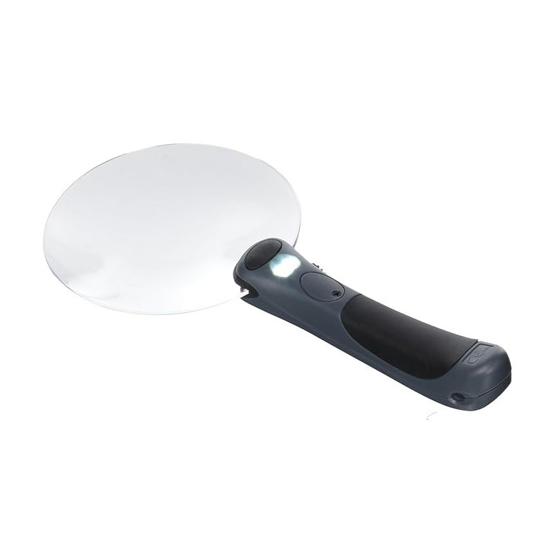ذره بین با نور ال ای دی که نیاز به 3باتری LR دارد . بزرگنمایی این ذره بین 2.5X می باشد و قطر لنز 9 سانتی متر است. این ذره بین وزن سبکی دارد و استفاده از آن راحت است.
