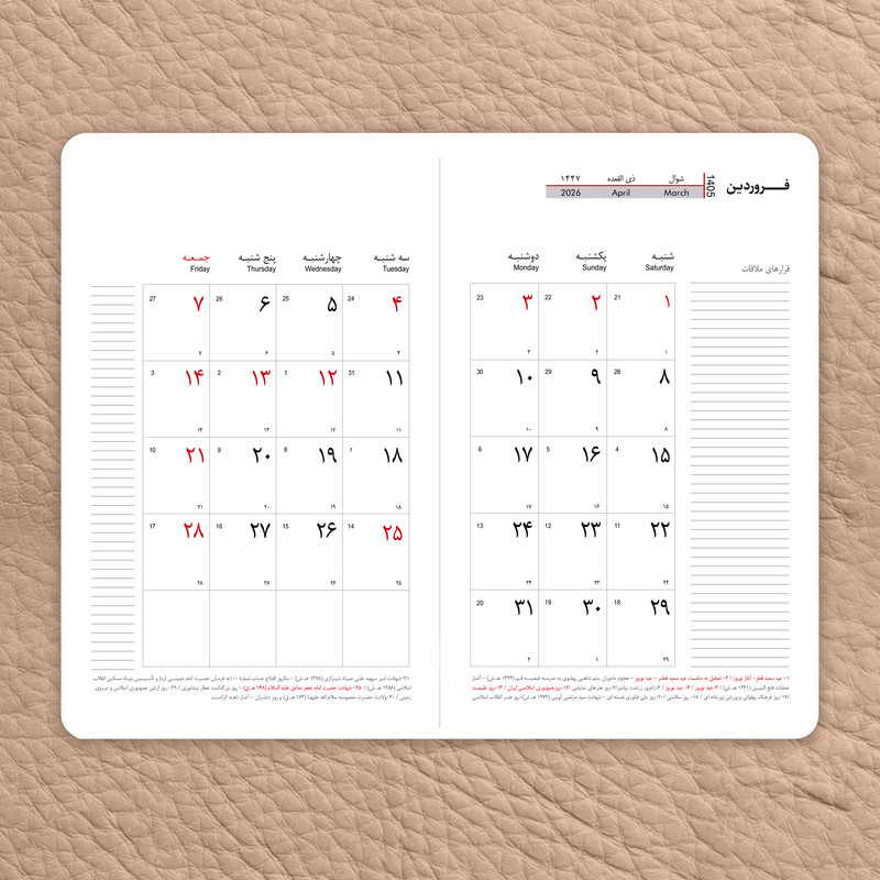 سررسید سال 1405 پدیده نقش مدل اداری به همراه جامدادی و خودکار