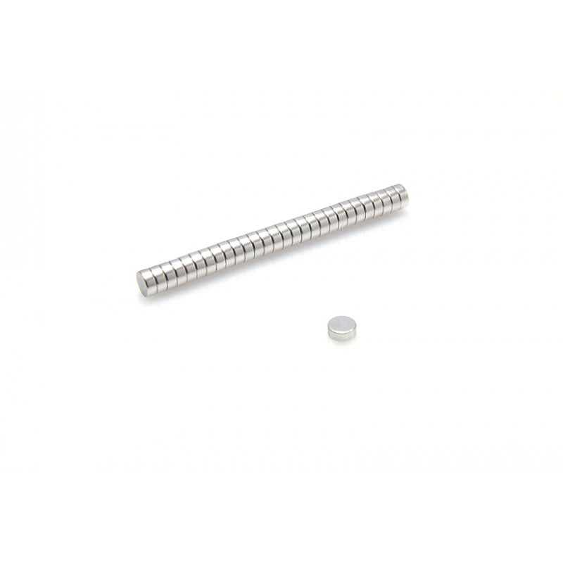 آهنربا نئودیمیوم سکه ای به قطر 5 میلیمتر ارتفاع 2 میلیمتر با پوشش آبکاری نیکل مس نیکل، محوری(axial) مواد تشکیل دهنده NdFeB، خاصیت مغناطیسی N35