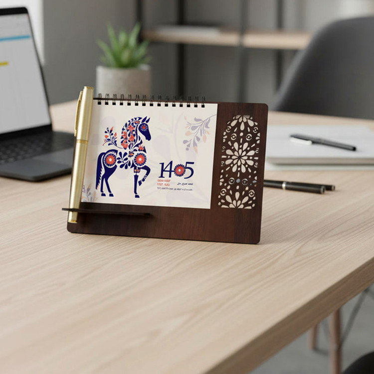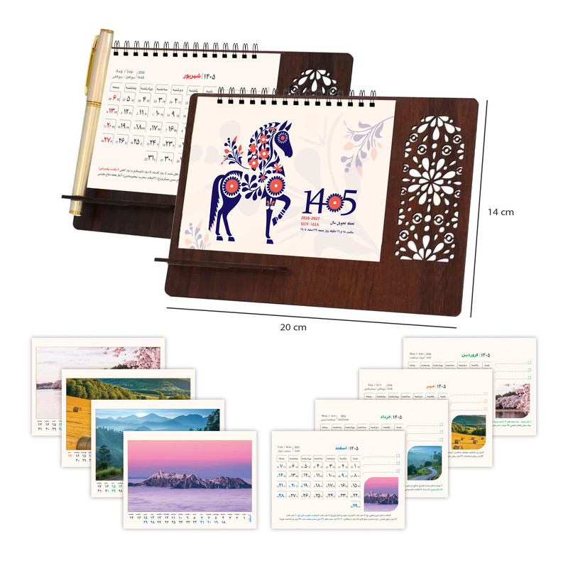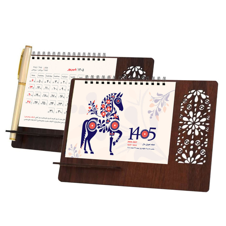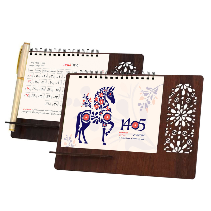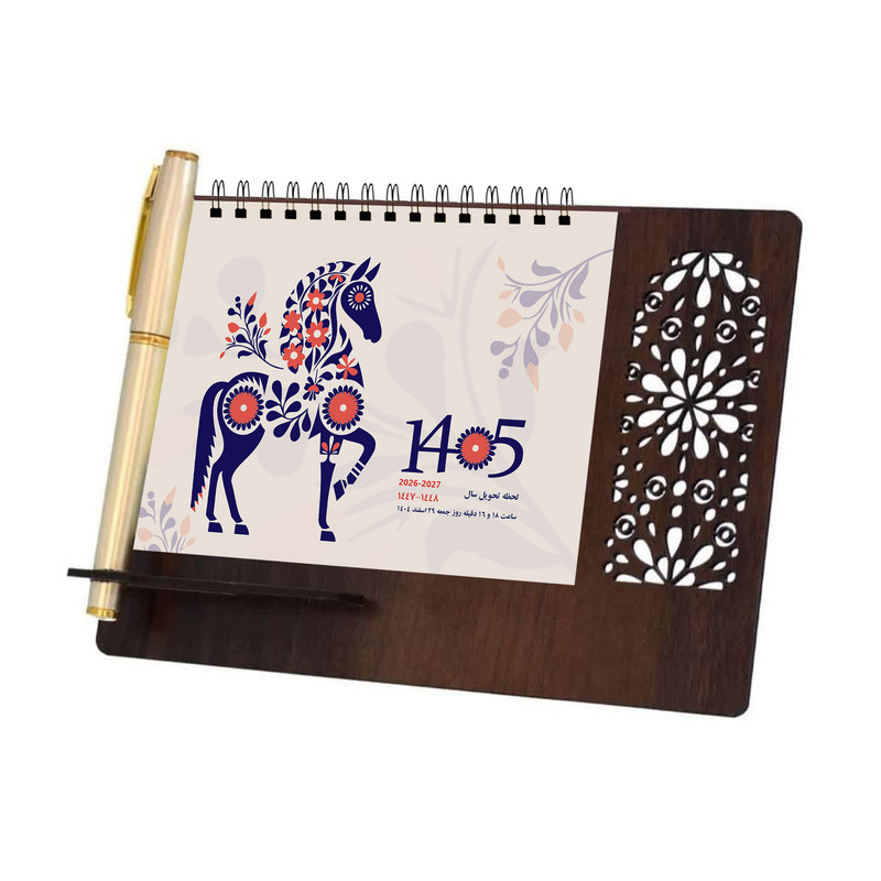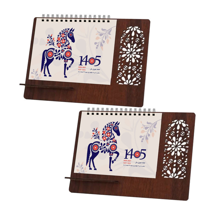 تقویم رومیزی سال 1405 مدل گلبرگ طرح اسب بسته 2 عددی