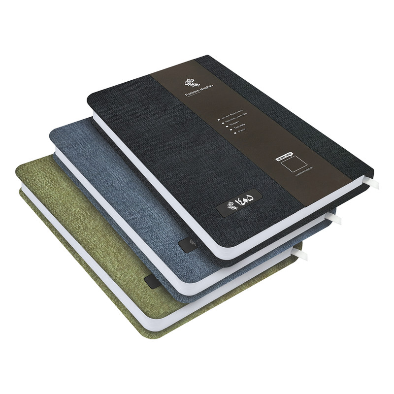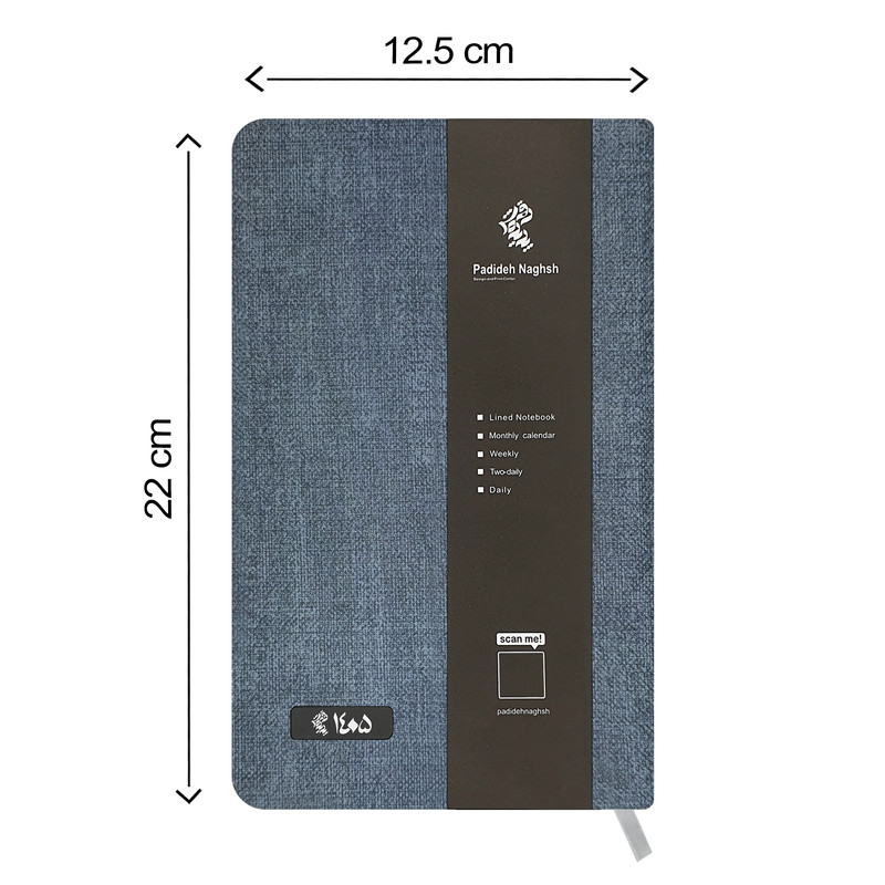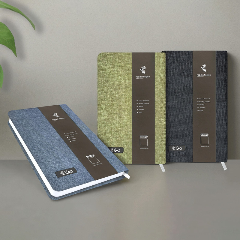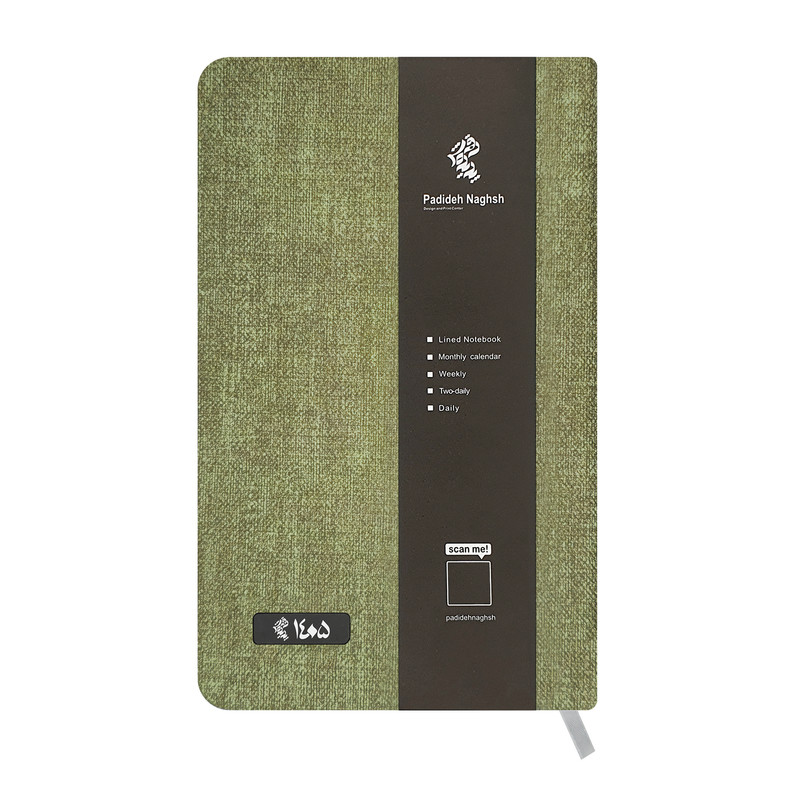 جلد سخت این محصول از چرم جین ساخته شده؛ چرمی با بافت منظم و مقاوم که حس کیفیت را از همان اولین لمس منتقل میکند. این مدل در سه طیف رنگی مشکی ، سبز و سرمه ای ارائه میشود و پلاک مشکی درجشده با عدد ۱۴۰۵ روی جلد، هویت سال را بهصورت شکیل و رسمی مشخص میکند. ابعاد سررسید ۲۲ در ۱۲.۵ سانتیمتر است که باعث میشود هم فضای نوشتاری کافی داشته باشد و هم حمل آن در کیف یا روی میز کار راحت باشد.