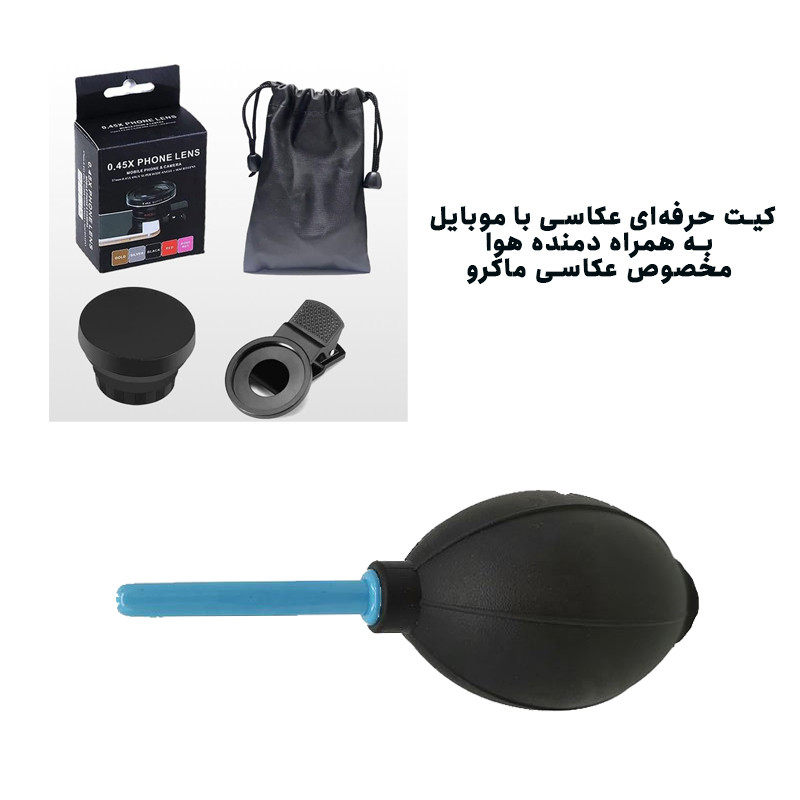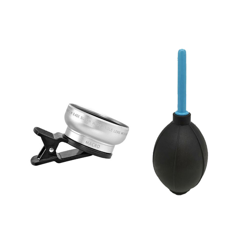 نز کلیپسی موبایل زومی 0.45X دارای یک لنز سوپرواید و یک لنز ماکرو است.لنز سوپرواید برای عکاسی و فیلمبرداری به شما دید بسیار وسیع تری می دهد پس اگر دوربین تلفن هوشمند شما از امکان عکاسی با زاویه باز بهره نمی برد این یک لنز استثنایی و پرکاربرد برای شماست.کیت لنز موبایل واید و ماکرو Zomei 0.45X 37mm نقرهای به همراه دمنده هوا (پوآر) یک مجموعه کاربردی برای عکاسان و تولیدکنندگان محتواست که علاوه بر ارتقاء کیفیت عکسها، ابزار مناسبی برای نگهداری و تمیزکاری تجهیزات شما فراهم میکند. لنز واید این مجموعه با ضریب 0.45X زاویه دید بیشتری نسبت به لنز اصلی موبایل ایجاد کرده و برای ثبت مناظر گسترده، عکاسی گروهی و فضاهای کوچک بسیار ایدهآل است. بخش ماکرو این لنز نیز امکان عکاسی از سوژههای کوچک با جزئیات فوقالعاده مانند گلها، حشرات و اشیای ظریف را فراهم میکند. جنس بدنه این لنز از آلیاژ باکیفیت ساخته شده و با شیشه اپتیکال چند لایه پوششدار، وضوح بالا و کاهش اعوجاج تصویر را تضمین میکند. اما بخش اصلی این کیت دمنده هوا یا همان پوآر است که یک ابزار ضروری برای تمیز کردن لنزها، سنسور دوربین، تجهیزات عکاسی، صفحه نمایش، صفحهکلید، لنز عینک، فیلترها و حتی قطعات ظریف الکترونیکی محسوب میشود. طراحی ارگونومیک و نازل باریک پوآر باعث میشود جریان هوای متمرکز و قدرتمندی به سطح مورد نظر برسد و گردوغبار بدون نیاز به تماس مستقیم و بدون ایجاد خطوخش از بین برود. استفاده از دمنده هوا بهخصوص برای سنسور دوربین یا سطوح حساس، جایگزین ایمنتری نسبت به دستمال یا ابزارهای ساینده است و به افزایش طول عمر تجهیزات شما کمک میکند. این کیت با ترکیب یک لنز چندکاره و یک ابزار تمیزکننده حرفهای، انتخابی ایدهآل برای عکاسان حرفهای و علاقهمندان به ثبت تصاویر باکیفیت و نگهداری صحیح از تجهیزات است و تمام نیازهای شما را از عکاسی تا نگهداری تجهیزات پوشش میدهد.