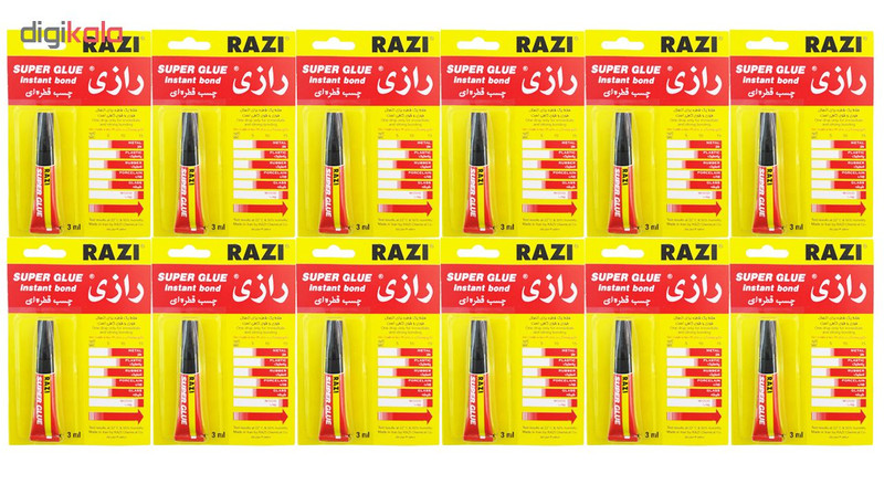 چسب قطره ای رازی مدل Super Glue حجم 3 میلی لیتر بسته 12 عددی