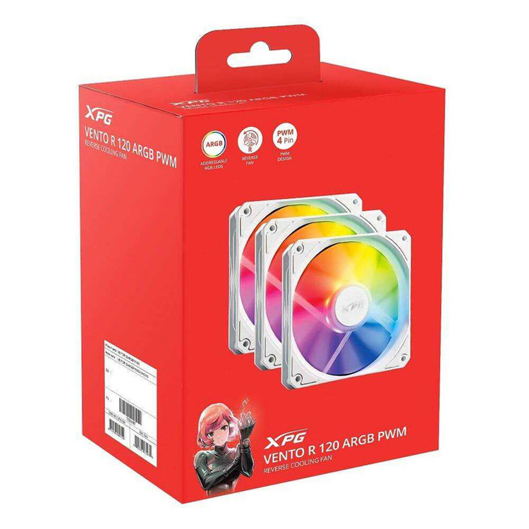 فن کیس ای دیتا ایکس پی جی مدل VENTO R 120 ARGB PWM WHITE بسته سه عددی