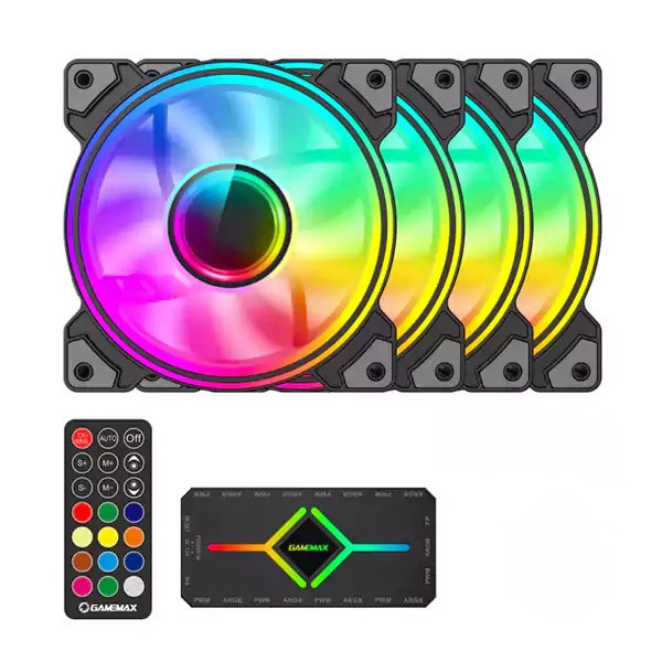 چهار عدد فن ARGB ،هاب ARGB،کنترلر سازگار با تمامی مادربورد های دارای سوکت ۴pin pwm برای کنترل نورپردازی از مادربورد باید به سوکت ARGB متصل گردد دارای ساپورت Asus Aura Sync ,Msi Mystic Light