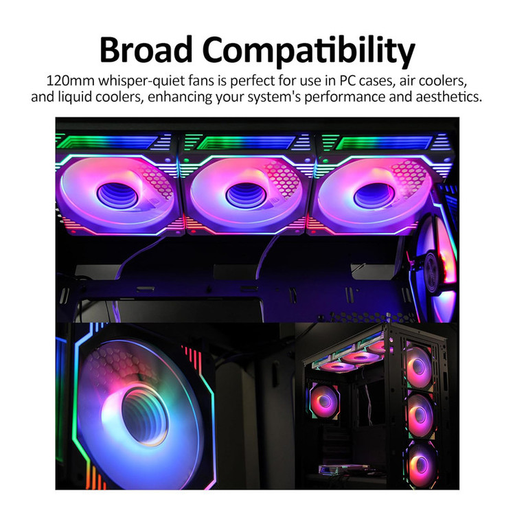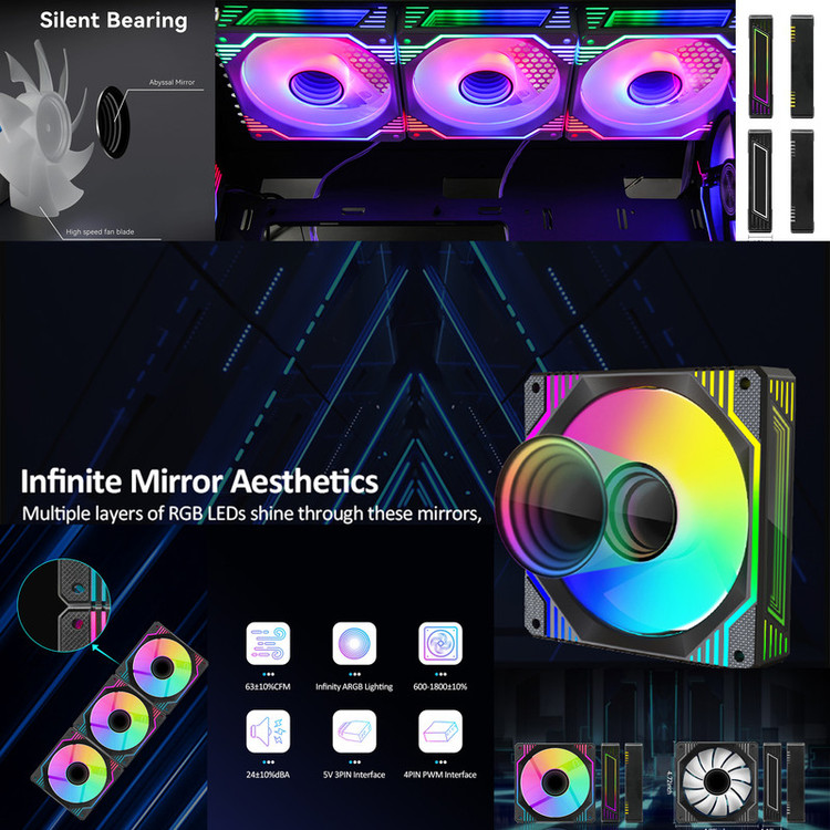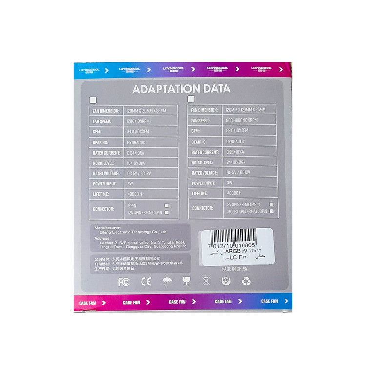 6 عدد تک فن ARGB مشکی لاوینگ کول مطابق تصاویر .PWM(کنترل فن).فست اسپید 0.24 A . داری سوکت 3 پین Aura و 4 پین سیپیو .نری و مادگی برای اتصال به هم جهت استفاده در کیس های گیمینگ ... باقدرت بسیار مناسب.پره های هر 6 فن معمولی هستن و ریورس نمیباشند.