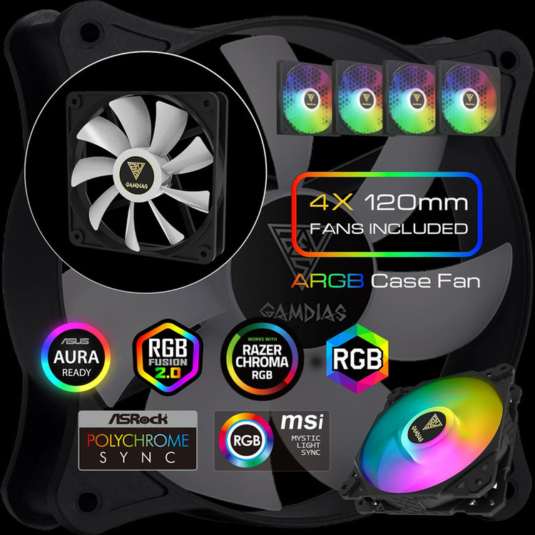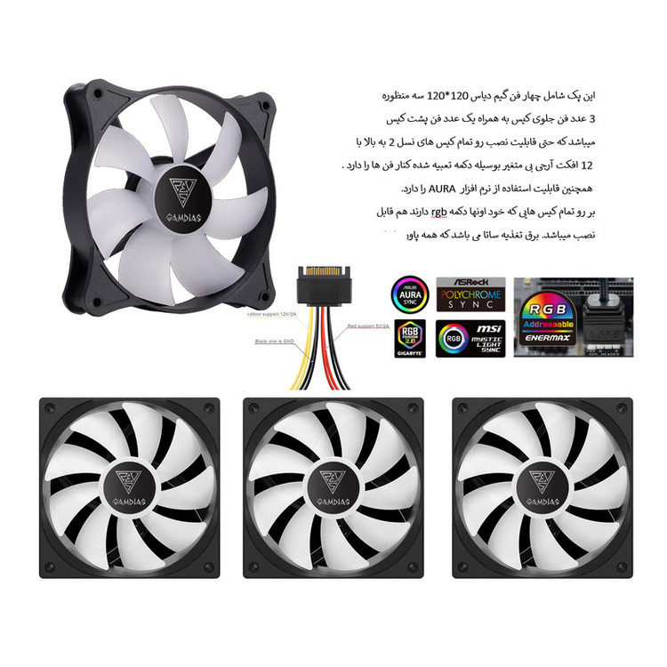 فن کیس گیم دیاس مدل HUYDROLIC120mm ARGB NRGB بسته چهار عددی