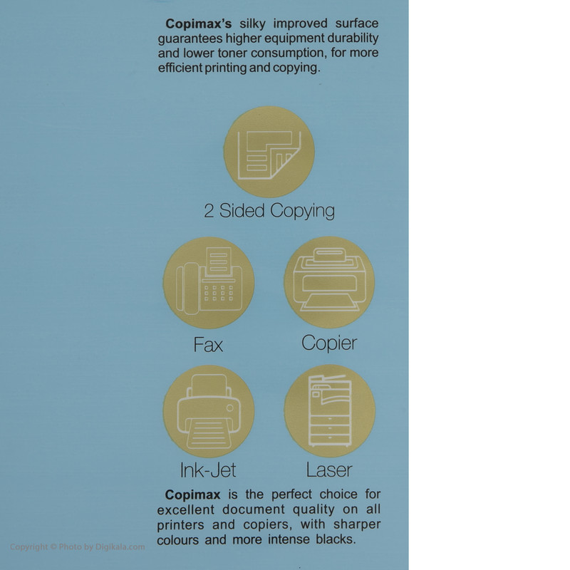 - 5 بسته 500 عددی - امکان چاپ در دو سمت کاغذ - مناسب برای استفاده در پرینت لیزری، جوهر افشان، دستگاه کپی و فکس - دارای بسته بندی از جنس پروپلین با خاصیت ضد آب - استفاده شده از چوب درخت اکالیپتوس