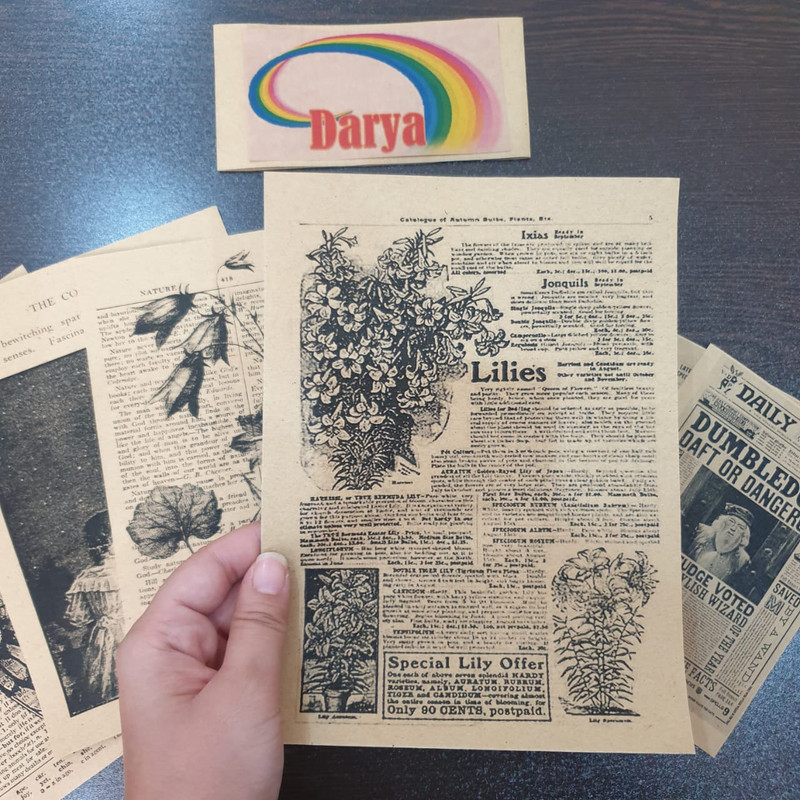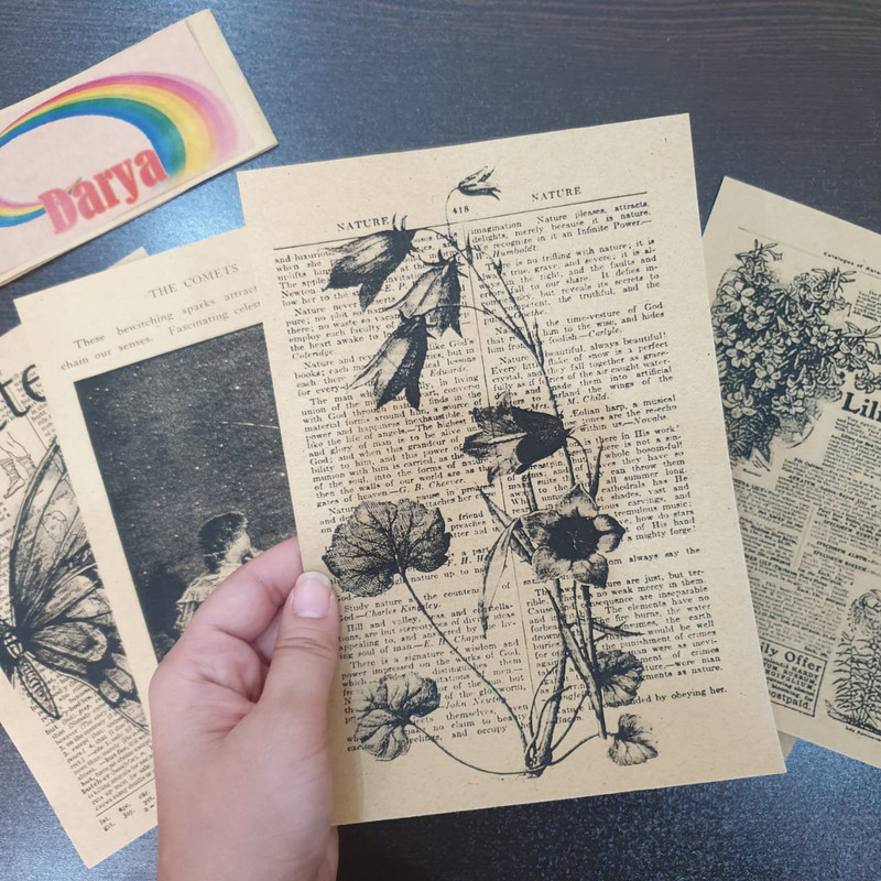 بسته کاغذ رنگی مدل اسکرپ بوک طرح روزنامه وینتج، شامل هشت طرح مختلف مشکی رنگ روی زمینه کاهی است. همه طرحها حال و هوای وینتیج و قدیمی دارند و برخی از آنها به شکل روزنامه انگلیسی و برخی طرحهای گرافیکی هستند. همچنین تعدادی از کاغذها را میتوانید به دلخواه برش دهید و از آنها در قسمتهای مختلف استفاده کنید در حالی که بقیه را باید به صورت کامل استفاده کنید. بسیاری از افراد حتی از این کاغذها به صورت مستقیم به عنوان پوستر یا آویز دکوری برای دیوار اتاق خود استفاده میکنند که جذابیت بسیاری هم دارد.