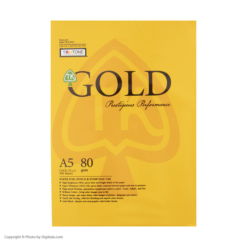 کاغذ گلد (GOLD)که معرف حضور است در سایز A5 می باشد. با کاربری چاپ معمولی است.وزن این کاغذ 80گرمی می باشد.ابعاد آن 148x210 است.