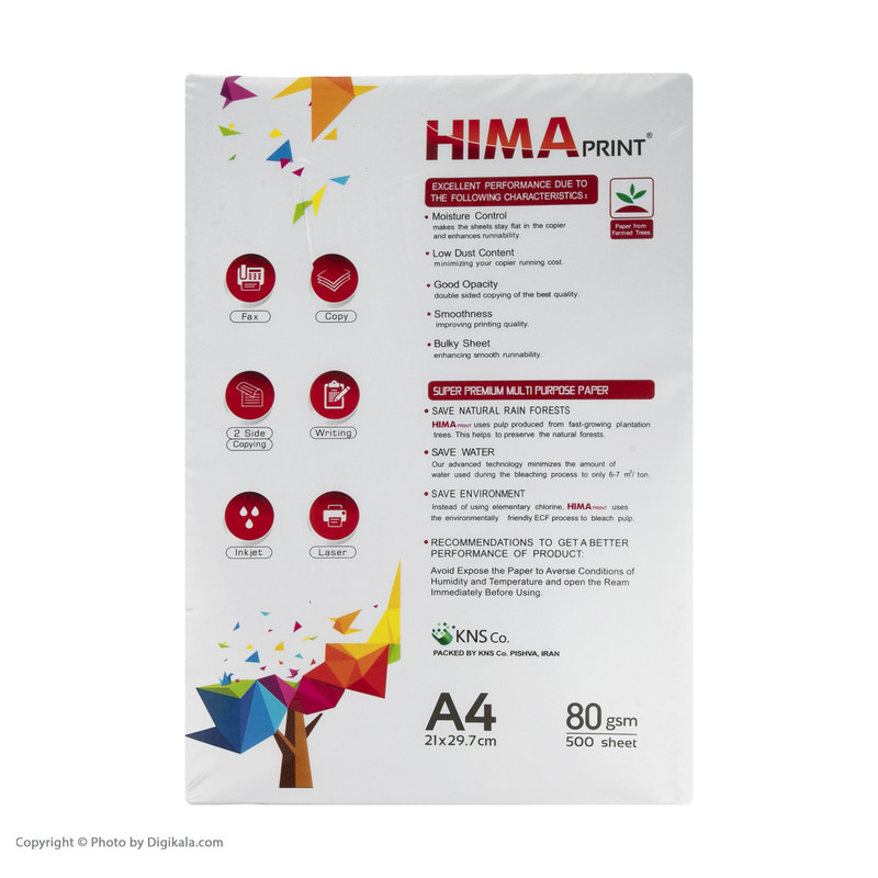 کاغذ A4 هیما بسته 500 عددی یکی از گزینههای مقرون به صرفه و مناسب در میان برندهای رنگارنگ و متنوع کاغذ است. A4 هیما از نظر جنس کاغذ هم مرغوبیت بالایی دارد و جزو کاغذ تحریرهای بدون پرز محسوب میشود. این کاغذ موجب استهلاک دستگاههای مختلف نمیشود و با خیال راحت میتوانید از استفاده از آن لذت ببرید. . برای تولید کاغذ A4 هیما بسته 500 عددی از فناوری برش لیزری استفاده شده است. وزن این کاغذ با انواع کاغذ A4 استاندارد برابر است و حدود ۸۰ گرم وزن دارد که استحکام کافی را به آن میدهد و در عین حال بیش از حد هم سنگین نیست.