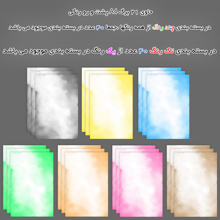 کاغذ رنگی A4 مستر راد مدل ابر و باد بسته 40 عددی