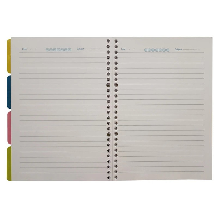دارای ۲۶ سوراخ مخصوص کلاسور ۲۶ حلقه - در ابعاد استاندارد ۱۷.۶ × ۲۵ سانتی متر - ۱۰۰ برگ کاغذ کلاسوری به همراه ۴ دیوایدر رنگی
