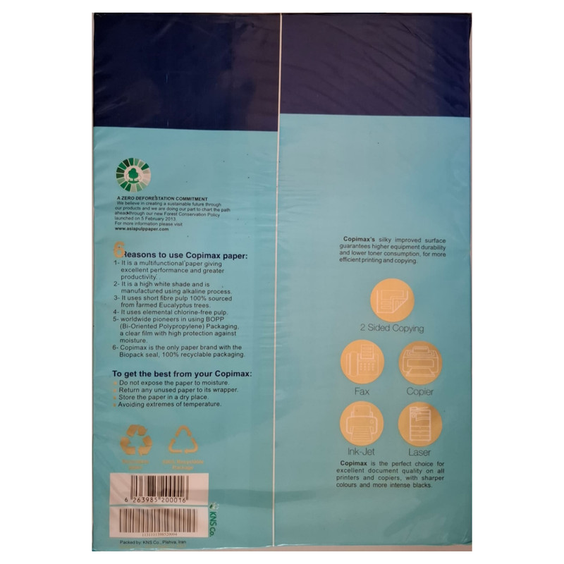 نوع کاغذکاغذ چاپیوضعیت چسبدار بودنبدون چسبوضعیت براقیتماتتعداد سوراخ کناره کاغذبدون سوراخکاربرد کاغذچاپ و پرینتابعاد290x210 میلیمتروزن2480 گرمرنگسفید