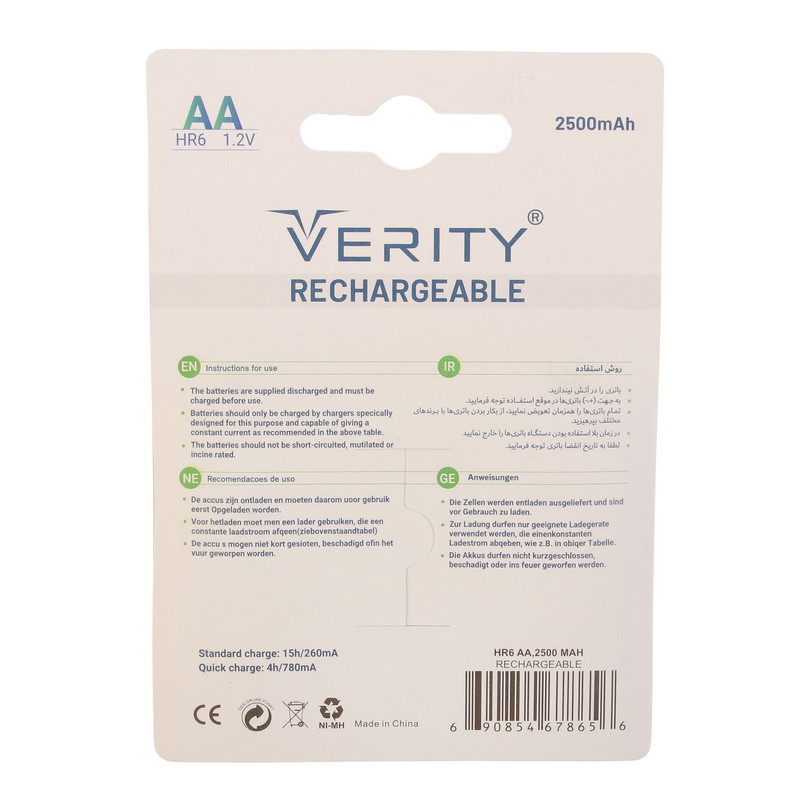 ولتاژ باتری1.2 ولتنوع تکنولوژی باترینیکل – متال هیدریدقابلیتهای باتریقابلیت شارژ مجددتعداد باتریهای موجود در پک۲ عددیتعداد باتریهای قابل شارژ2 عددنوع باتریباتری قلمی (سایز AA)