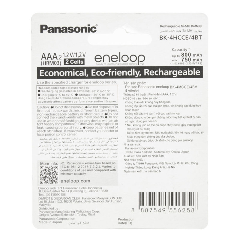 باتری نیم قلمی قابل شارژ پاناسونیک مدل BK-4HCC/4BT S بسته دو عددی