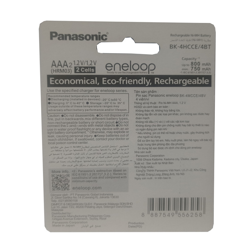 باتری نیم قلمی قابل شارژ پاناسونیک مدل bk-4hcce/4bt/Eneloop pro بسته 2 عددی