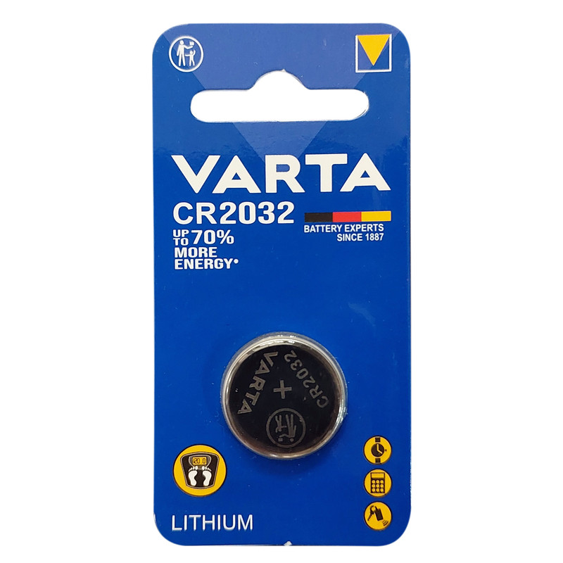 باتری سکه ای وارتا (VARTA) ساخت آلمان مدل CR2032 یکی از پرکابردترین باتری های سکه ای است که برای تجهیزات الکترونیکی گوناگون کاربرد دارد. دستگاه سنجش قند خون، انواع ریموت کنترل، ساعت مچی و بسیاری دیگر از دستگاه های دیجیتالی و الکترونیکی با استفاده از باتری سکه ای وارتا CR2032 تغذیه می شوند.