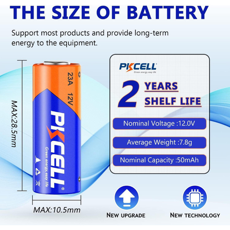 برند: PKCELL نوع باتری: آلکالاین مدل: A23 / 23A ولتاژ: 12 ولت کاربرد: ریموت درب، ریموت دزدگیر، زنگ بیسیم و تجهیزات کوچک معادلها: MN21، VR22، L1028 📌 پیش از خرید حتماً مدل باتری قبلی دستگاه خود را بررسی کنید تا سایز و ولتاژ مطابقت داشته باشد.