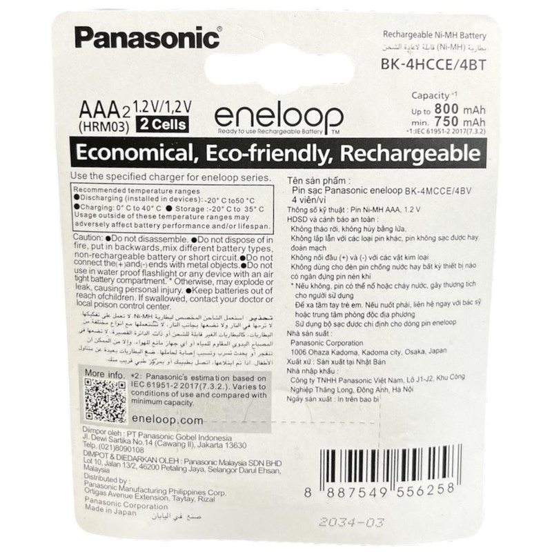 ولتاژ باتری1.2 ولتقابلیتهای باتریقابلیت شارژ مجددتعداد باتریهای موجود در پک۲ عددینوع باتری استانداردباترینوع باتریباتری نیمقلمی (سایز AAAA)