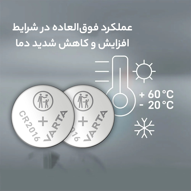 باتری سکه ای وارتا (VARTA) ساخت آلمان مدل CR2016 یکی از پرکابردترین باتری های سکه ای است که برای تجهیزات الکترونیکی گوناگون کاربرد دارد. دستگاه سنجش قند خون، انواع ریموت کنترل، ساعت مچی و بسیاری دیگر از دستگاه های دیجیتالی و الکترونیکی با استفاده از باتری سکه ای وارتا CR2016 تغذیه می شوند.