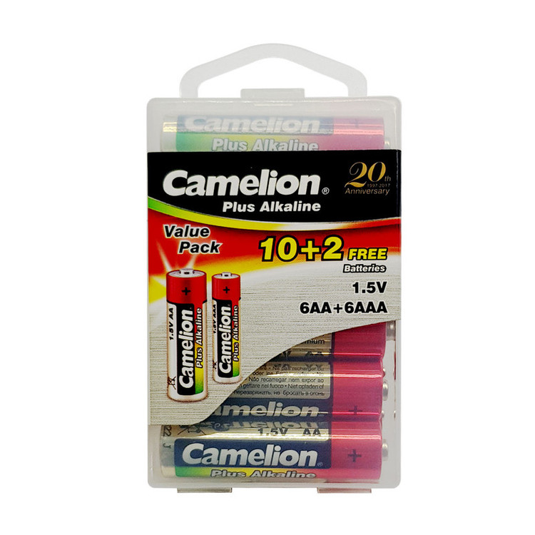 با خرید این مدل از محصولات «کملیون» صاحب 6 باتری قلمی و 6 باتری نیمقلمی خواهید شد و تا مدتها هیچ نیازی به تهیهی باتری نخواهید داشت. تکنولوژی ساخت این باتریها آلکالاین بوده و به همین دلیل ماندگاری طولانیمدت دارند. منظور از ماندگاری طولانی این است که حتی اگر قصد استفاده از باتریها را نداشته باشید، انرژی آنها به این زودی هدر نمیرود و تا چند سال باقی میماند. باتریهای آلکالاین براساس واکنش شیمیایی بین روی و اکسید منگنز ساخته شدهاند و نسبت به باتریهای معمولی روی-کربن تراکم نیروی بیشتر و ماندگارتری دارند. بهطور تخمینی میتوان گفت، تراکم نیروی باتریهای آلکالاین دو برابر بیشتر از باتریهای معمولی است. همچنین نشت و ازدستدادن نیرو در صورت استفادهنشدن به مدت طولانی در باتریهای آلکالاین بسیار کمتر از باتریهای معمولی است؛ بنابراین میتوانید این باتریها را به مدت طولانی در کمد یا کشو میزتان نگه دارید و نگران هیچچیز نباشید. بسته به نوع و کیفیت، باتریهای آلکالاین قبل از استفاده تا 7 سال انرژی را در خود نگه میدارند و تنها 5درصد از آن را در طول زمان از دست میدهند. ولتاژ هریک از این باتریها 1.5 ولت است و شما میتوانید با استفاده از آنها انرژی مورد نیاز دستگاههای مختلف مانند اسباببازی، ماوس و کیبورد بیسیم، ساعت، رادیو، چراغقوه و... را تامین کنید.