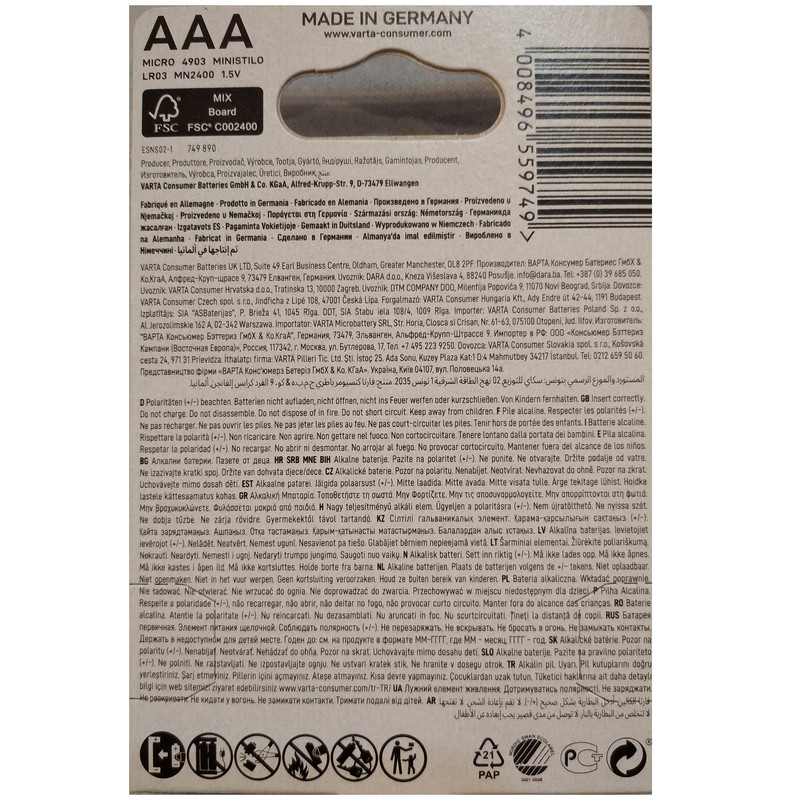 باتری نیم قلمی وارتا مدل LONG LIFE POWER بسته 4 عددی