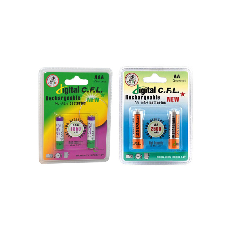 باتری قلمی و نیم قلمی قابل شارژ سی.اف.ال مدل 2500/1850mAh بسته 4 عددی