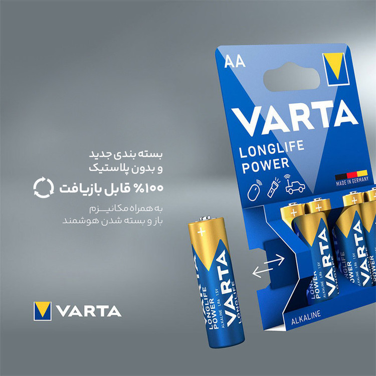 باتری قلمی و نیم قلمی وارتا مدل LONG LIFE POWER مجموعه 8 عددی