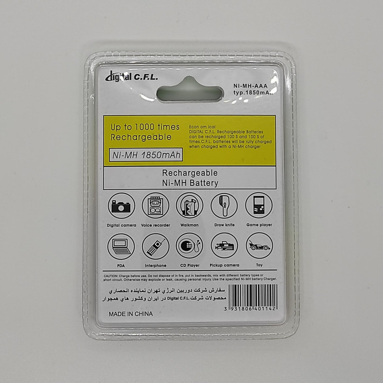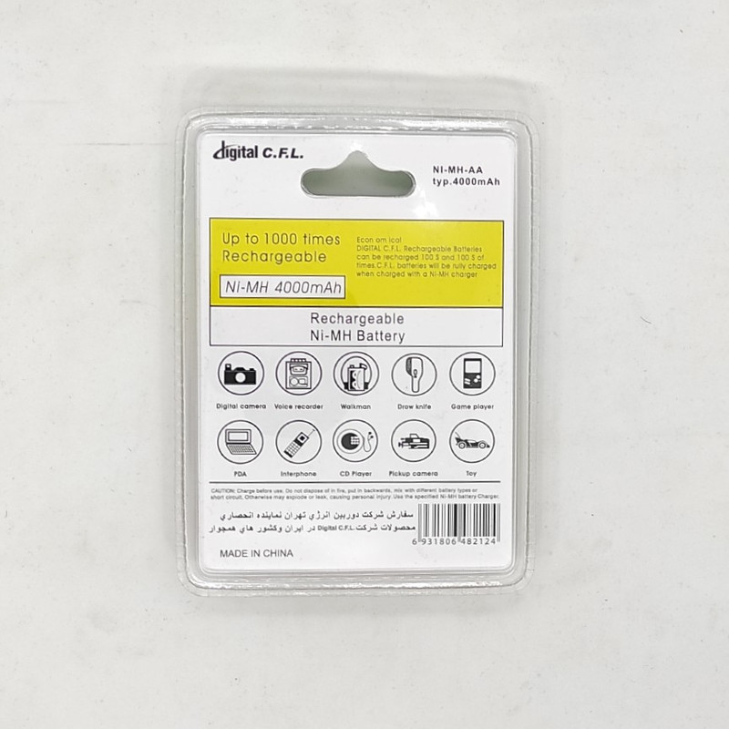 باتری قلمی و نیم قلمی قابل شارژ سی.اف.ال دیجیتال مدل 4000/1850mAh بسته 4 عددی