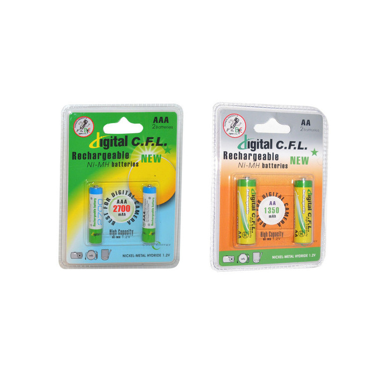 باتری قلمی و نیم قلمی قابل شارژ سی.اف.ال مدل 1350/2700mAh بسته 4 عددی