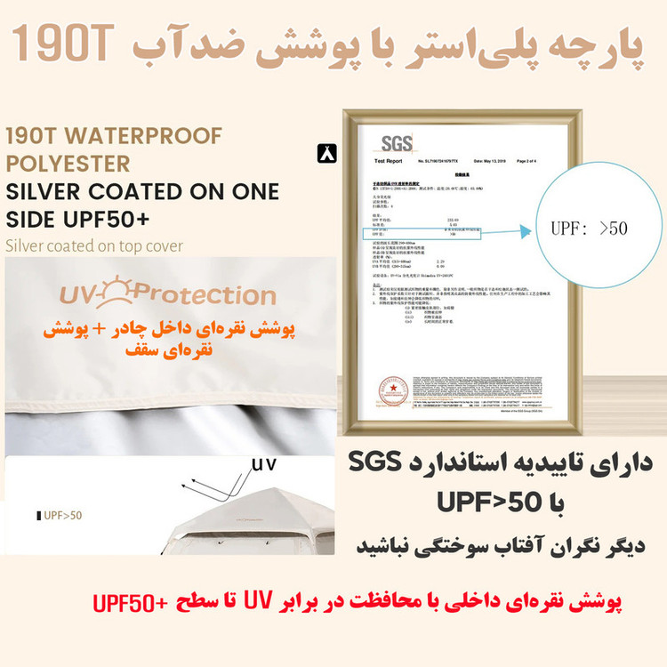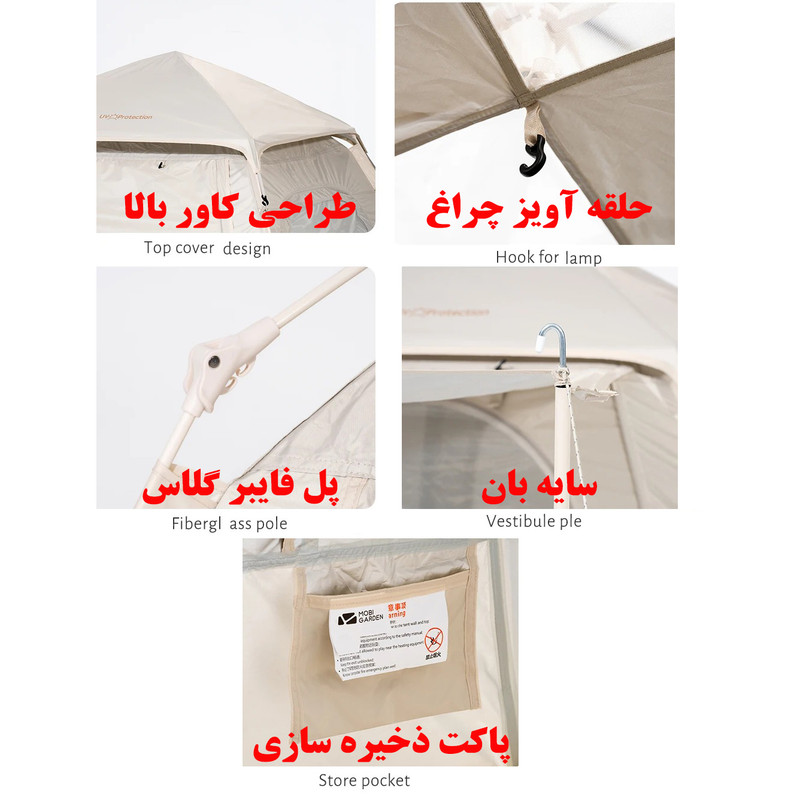 ارتفاع داخلی چادر : 145 سانتیمتر