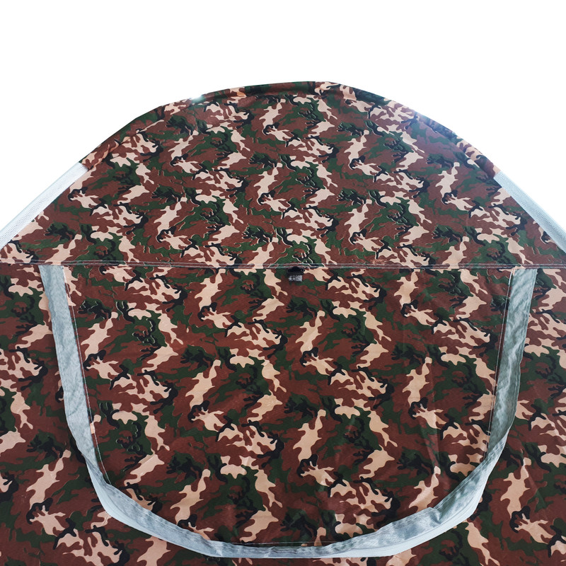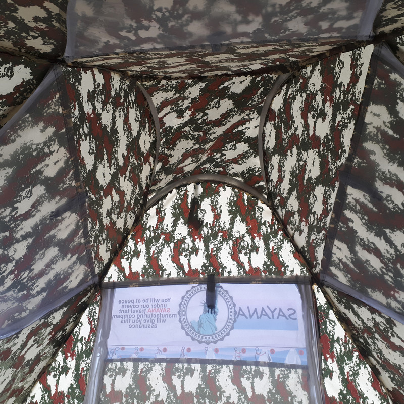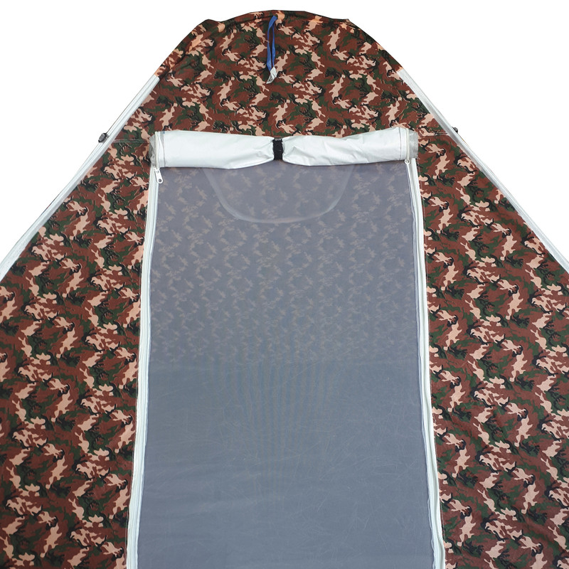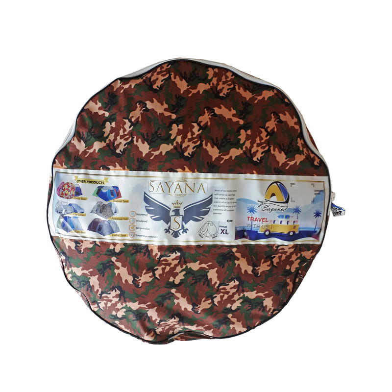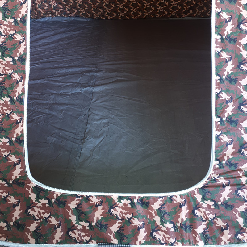 مواد پشت پارچه ضد آب - دارای پشه بند برای درب و تمامی پنجره ها - سه عدد پنجره دارای توری محافظ برای حشرات - نوار ابریشم - کف ضخیم - ابعاد 250x250x200