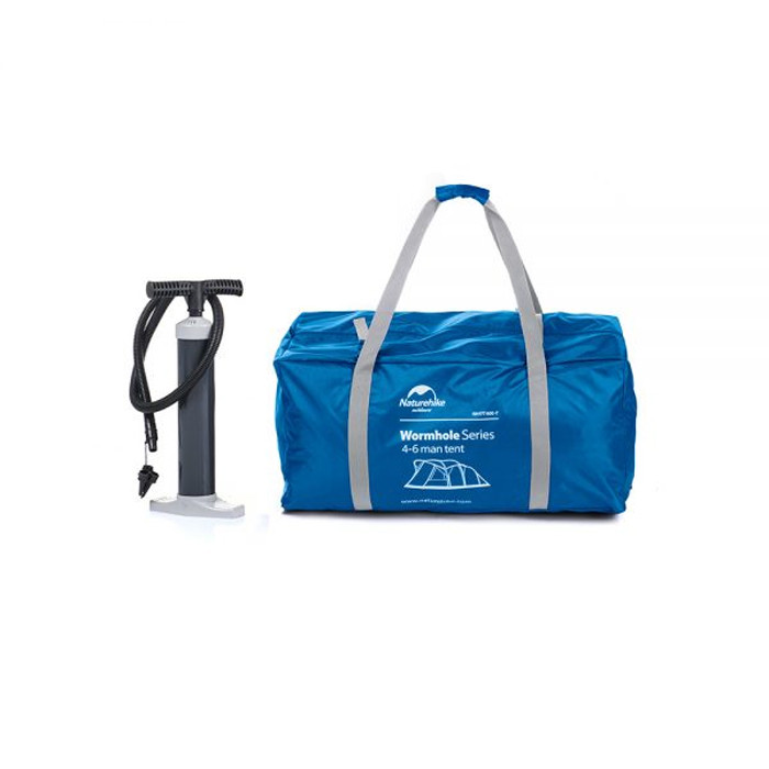 چادرهای سری کرم چاله نیچرهایک، از دسته چادرهای بادی می باشند. این چادر با ظرفیت 4 تا 6 نفر به سرعت آماده استفاده شده و با یک تلمبه مخصوص همراه چادر قابل باد شدن است. به جای تیرکهای فلزی و سنگین که عموما دست و پاگیر نیز هستند، از تیوب های باد در ساختار این چادر استفاده شده که برپا کردن آن صرفا با باد کردن آنها صورت می پذیرد. این چادرها دارای پنجره های پلی استری شفاف و درب ورودی با مش مقاوم B3 هستند که در شرایط جوی متفاوت امکان اسکان و استراحت دلپذیری را برای مصرف کننده به ارمغان می آورد. برپایی آسان، فضای بزرگ و مقاومت PU 3000mm به آب، این چادر را برای سفرهای خانوادگی و دسته جمعی به یک گزینه جذاب بدل کرده است. کافی است چادر را روی زمین پهن کنید و تمام ستون ها را باد کنید و از سفر خود لذت ببرید.